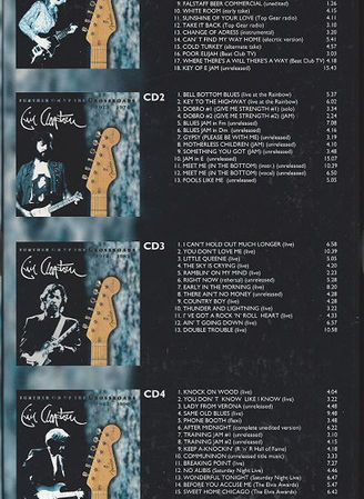 Cuatro CD en un estuche Jewel de varias unidades. Texto íntegro de las notas (libreto, primera página interior): "... UP THE CROSSROADS ... no es en absoluto un "Greatest Hits" o "Best of...", es principalmente una selección de rarezas, outtakes, obscurities, grabaciones raras de conciertos y algunas joyas inéditas que abarcan 25 años de la carrera de Eric.